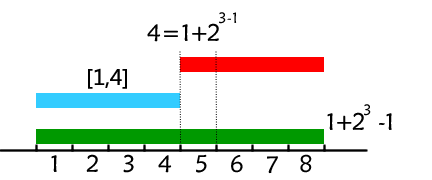 找到两个长为\(2^{k}\)区间,区间长度的一半≤长度≤区间长度