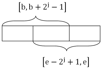 \(\frac{{e – b}}{2} \le 2^k \le e – b + 1\) (b是要查询的区间的起点,e是要查询的区间的终点)