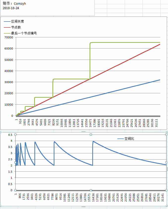 附线段树空间占用分析程序(打表),上面那个图的表就是它计算出来的: